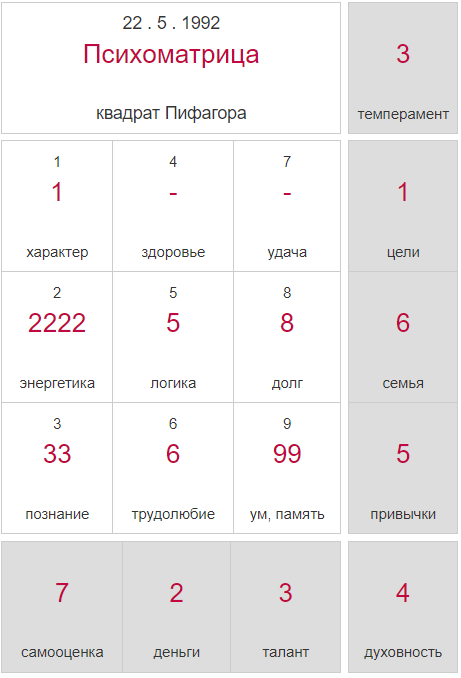 Анализ психоматрицы Пифагора